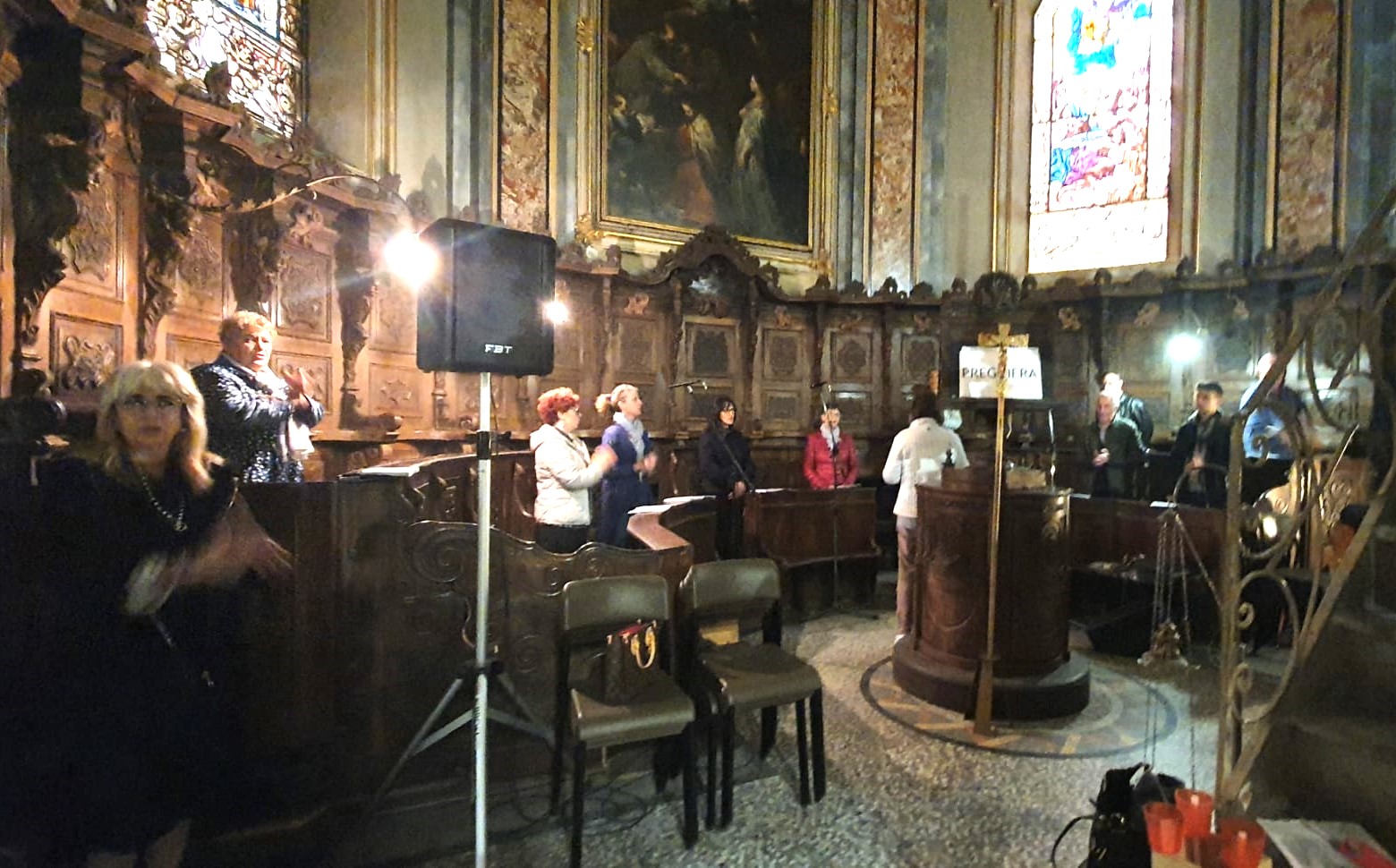 La “predica” come l’ha chiamata il parroco di Trino, don Patrizio Maggioni, si è iniziata in un modo singolare: con una barzelletta.