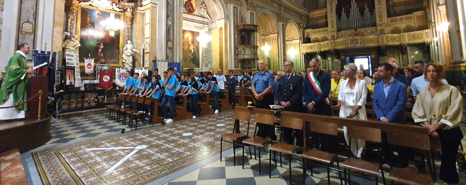 Un bellissimo colpo d’occhio variopinto, di grande impatto, il ventaglio di bandiere, stendardi e vessilli appartenenti alle varie Confraternite e Associazioni trinesi, che campeggiava sul lato destro dell’altare, tutti hanno voluto essere presenti con i loro segni identitari in segno di devozione.
