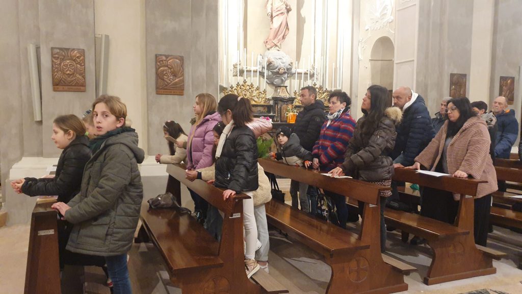 Tantissimi i bambini del catechismo che accompagnati dalla propria Catechista, questo venerdì 23 febbraio 2024, hanno animato la Via Crucis. Prima della lettura di ogni Stazione, a turno portavano davanti all’altare un segno inequivocabile di ciò che succedeva, che aveva vissuto Gesù, in quel preciso momento e nel mentre i chierichetti con la croce e le candele tra le mani si spostavano di Stazione in Stazione.