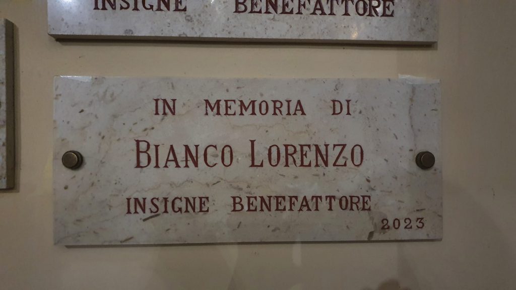 A presenziare a tutto il tradizionale rito antico, don Riccardo Leone, che ha iniziato la cerimonia con la benedizione della targa, che i Confratelli hanno voluto dedicare in memoria del Confratello defunto, Lorenzo Bianco, insigne benefattore.