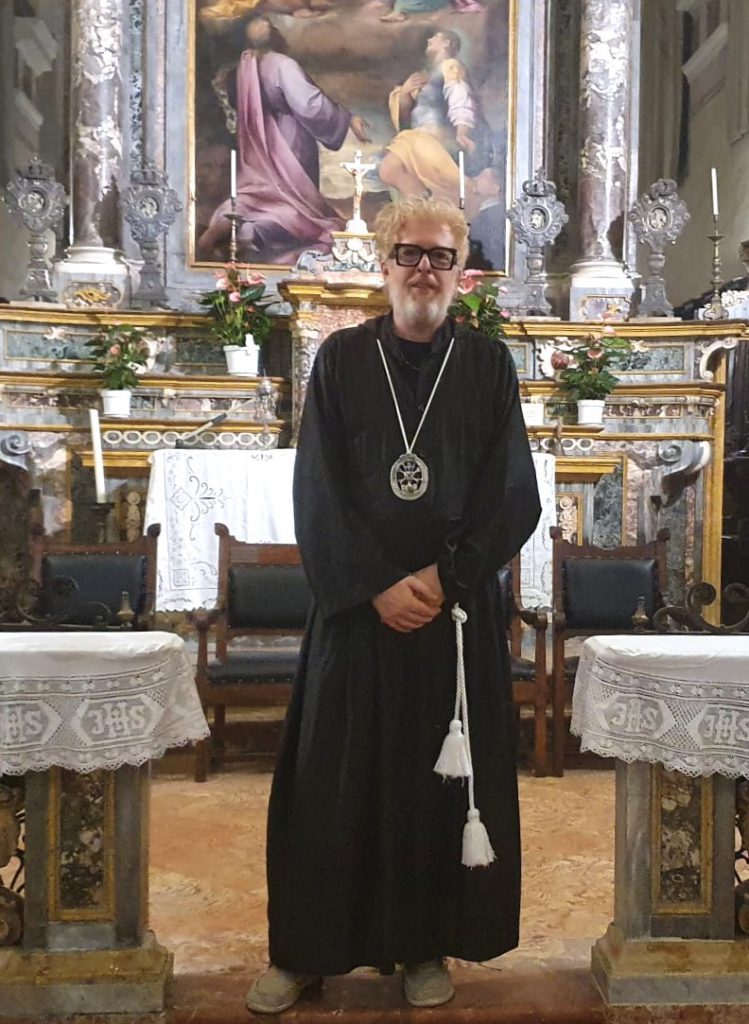 Il Priore Roberto Gualino ponendo loro le mani sulle spalle, ha dato il benvenuto ai recipiendari e li ha invitati a salire sull’altare con gli altri Confratelli.