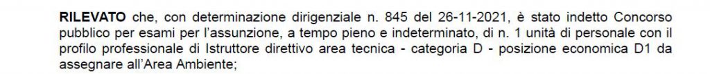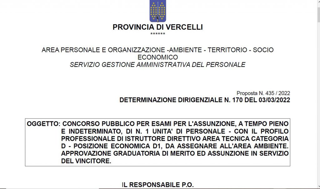 dell’Ente, ha rilevato la pubblicazione della determina dirigenziale n.