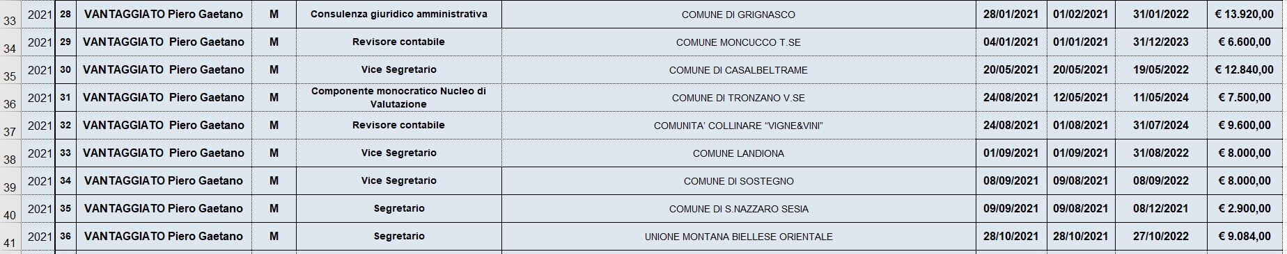 A livello quasi “fotografico”, come fossero due cartoline inviate da località diverse, ecco che si può rilevare come, il 25 dello stesso mese di marzo, Piero Gaetano Vantaggiato, questa volta nella sua qualità di Responsabile del Servizio Finanziario del Comune di Landiona, assegni un incarico alla Società Accounting srl – Leggi qui.