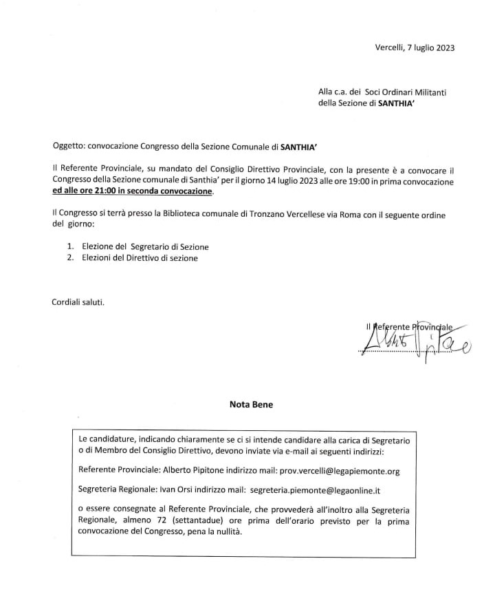 Dunque, bisogna sapere che al centro del problema non c’è tanto la Sezione di Santhià (in pratica la zona del santhiatese) della Lega, in quanto tale.