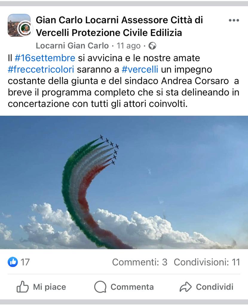 Ma le voci a Vercelli si rincorrono armai da giorni e nelle ultime ore si sono fatte convergenti e concordi sull’ipotesi minimale: potrebbe essere soltanto “sorvolo” anche qui da noi, appunto il 16 settembre prossimo.