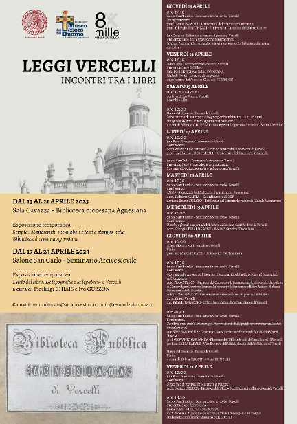 Dieci giorni in cui vari ed illustri esponenti della cultura vercellese e non solo incontreranno il pubblico e i libri, proponendo approfondimenti, attività ed esposizioni temporanee