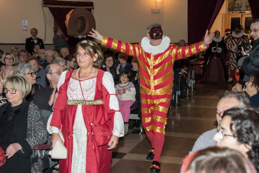 Al termine della serata, a tutto il numeroso pubblico che è tornato a gremire il Teatro Civico, è stato offerto un calice di vino e una “mascherina” in pasta frolla, intinta nel cioccolato e cosparsa di granelle colorate, creazione esclusiva dei ragazzi dell’Istituto Alberghiero, come omaggio alle maschere presenti.