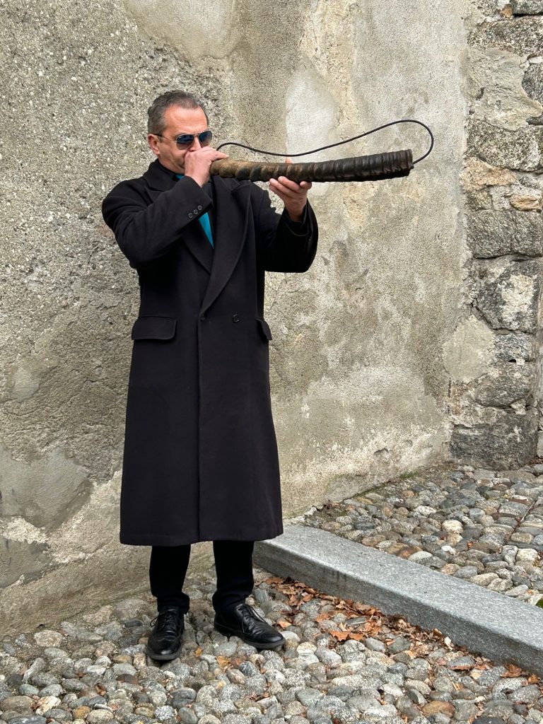 All’uscita della chiesa la nota lunga e maestosa dello Shofar – il piccolo corno di montone utilizzato ancora oggi come strumento musicale – suonato da Sandro Antonini, trombettista del Coro Liturgico San Gaudenzio, evocava la convocazione solenne, diventava monito a riflettere sulla propria vita, marcando il momento della partenza, l’incamminarsi lungo la strada acciottolata che conduce al Sacro Monte.