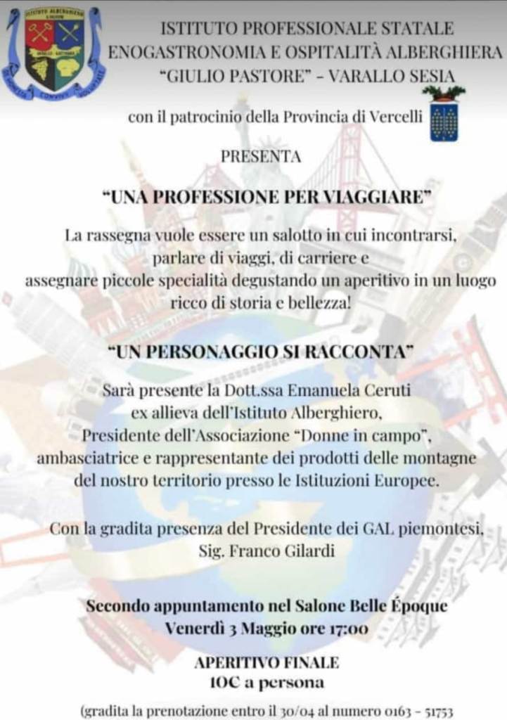 Sarà presente la dottoressa Emanuela Ceruti ex allieva dell’Istituto Alberghiero, Presidente dell’Associazione “Donne in campo”, ambasciatrice e rappresentante dei prodotti delle montagne del nostro territorio presso le Istituzioni Europee.