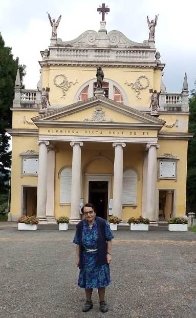 Le nipoti Vanda e Milva, l’accompagnavano in pellegrinaggio ogni anno, come ricordano alcune fotografie che la ritraggono davanti alla Basilica Nuova e nel suo atteggiamento tipico, mentre si accingeva ad entrare con le mani incrociate dietro la schiena.