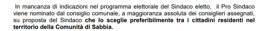 Se una cronaca sui lavori d’Aula sarà on line nelle prossime ore, un capitolo a parte merita ora la nomina (elezione) del Pro Sindaco di Sabbia.