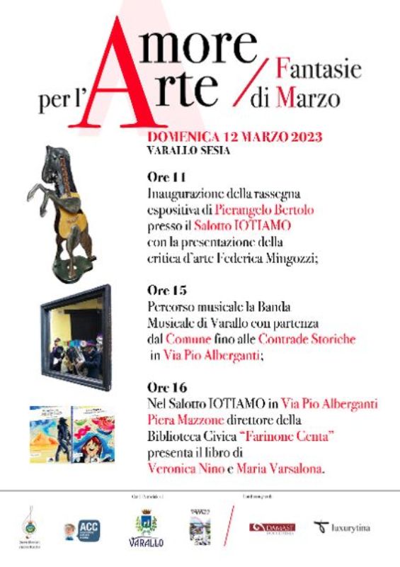 Nelle contrade storiche della Città d’arte della Valsesia, domenica 12 marzo 2023, ACC e la Banda Musicale Città di Varallo in collaborazione con il Comune di Varallo, inaugureranno la mostra d’arte contemporanea dell’artista novarese Pierangelo Bertolo presso il “Salotto Iotiamo” e presenteranno il progetto editoriale ViceVersa di Veronica Nino e Maria Varsalona.