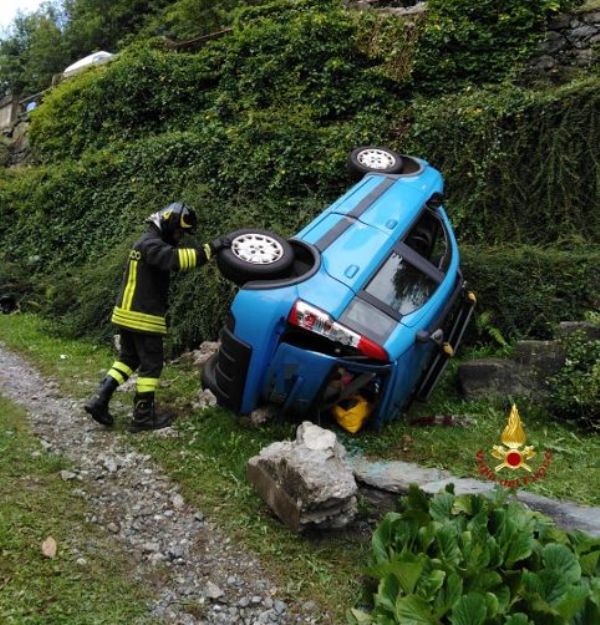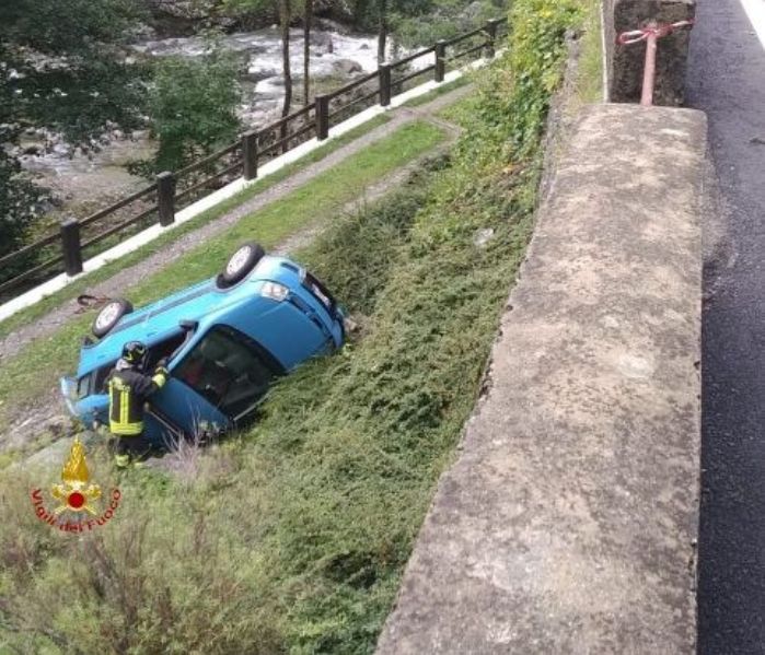 NOTIZIE DAI VIGILI DEL FUOCO – Varallo Sesia – Incidente in frazione Aniceti, auto cade in una scarpata