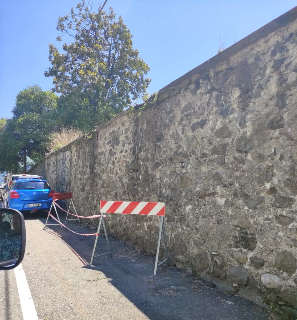 Su questa arteria in zona residenziale si affaccia il muro di cinta del compendio, dal quale ieri è caduto qualche bel pezzo di laterizio.