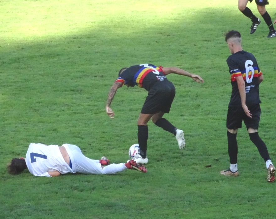 Alla mezzora, il Borgo recupera palla, il tiro di Del Barba viene deviato in angolo.
