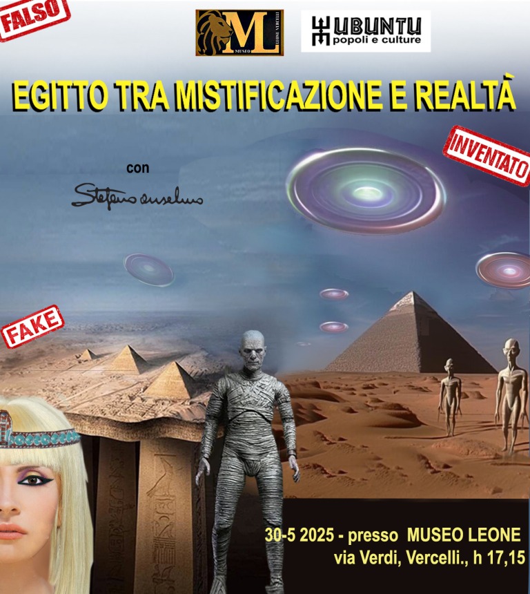 “Egitto tra Mistificazione e realtà: mistero, magia, sapienza occulta, alieni…” è il titolo della conferenza che Stefano Anselmo terrà al Museo Leone di Vercelli venerdì 30 maggio 2025 alle ore 17.30 presso il Corridoio delle Cinquecentine.