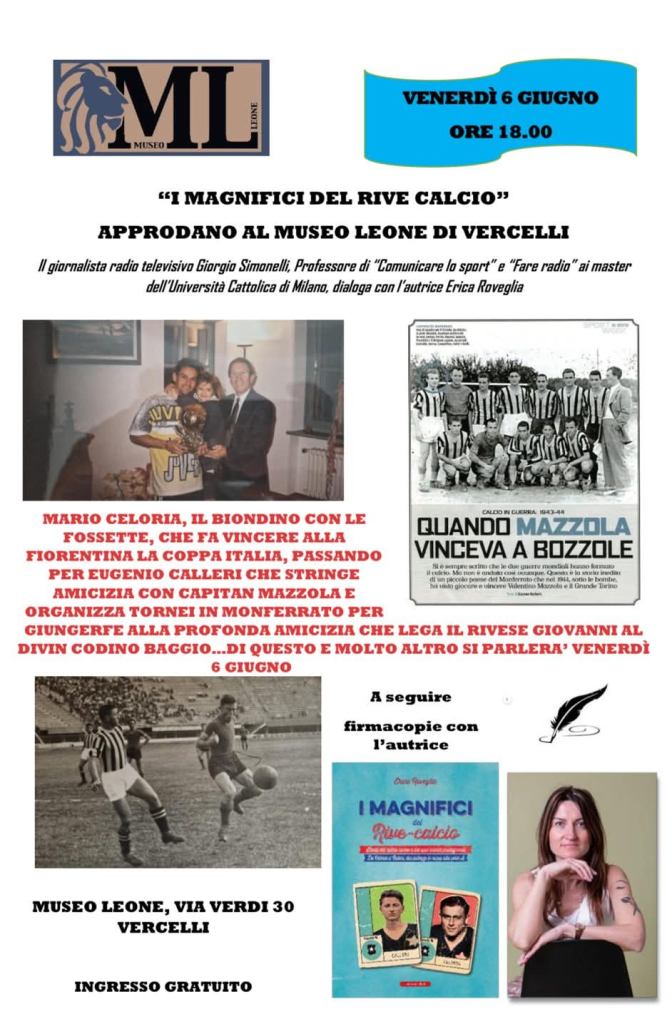 Al Corridoio delle Cinquecentine del Museo Leone di Vercelli , venerdì 6 giugno alle ore 18 si terrà la presentazione del volume “I magnifici del Rive Calcio”.