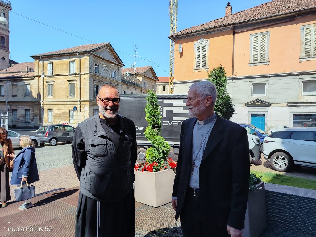 Come abbiamo anticipato, al nostro microfono, oltre a Fra Carlo, il Sindaco di Vercelli, Roberto Scheda, l’Arcivescovo Mons. Marco Arnolfo e, ultimo, ma non certo per importanza, il Presidente della Regione Piemonte, Alberto Cirio, che ha voluto dare personalmente il benvenuto alle opere e, naturalmente, anche a fra Carlo ed alla dottoressa Roccaforte.