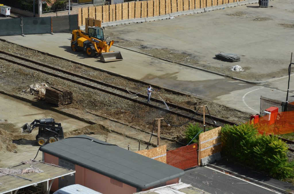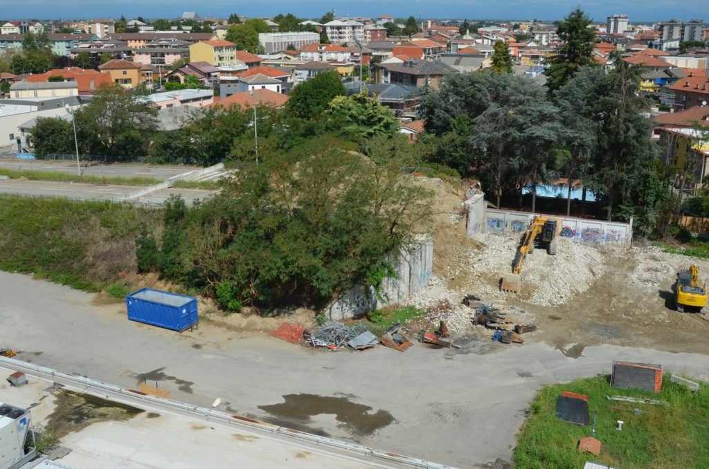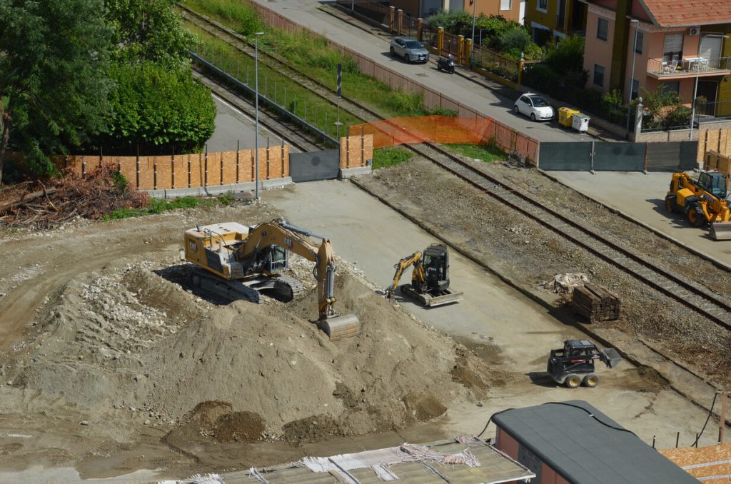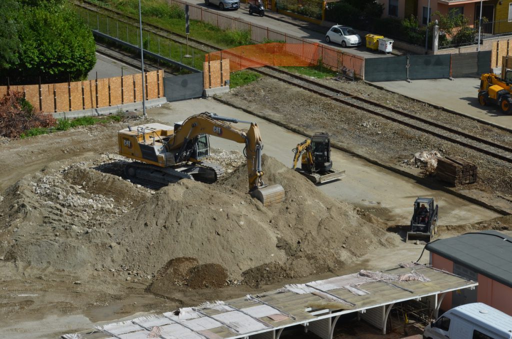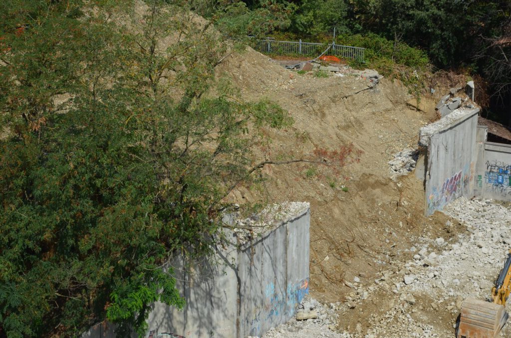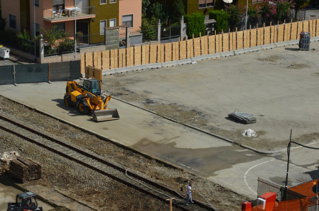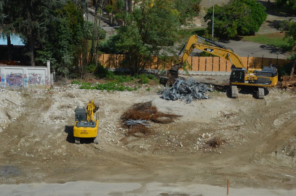 Come si vede, i lavori di abbattimento del tratto di viadotto (cioè la parte di infrastruttura che era sovrastante la strada e la ferrovia) è pressochè completata.