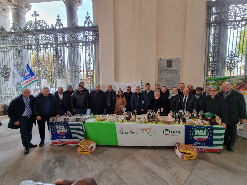 Il Segretario Generale Onofrio Rota con i dirigenti nazionali e regionali di Fai Cisl e Presidenti TerraViva, ha partecipato alla Santa Messa trasmessa in diretta su Rai Uno.