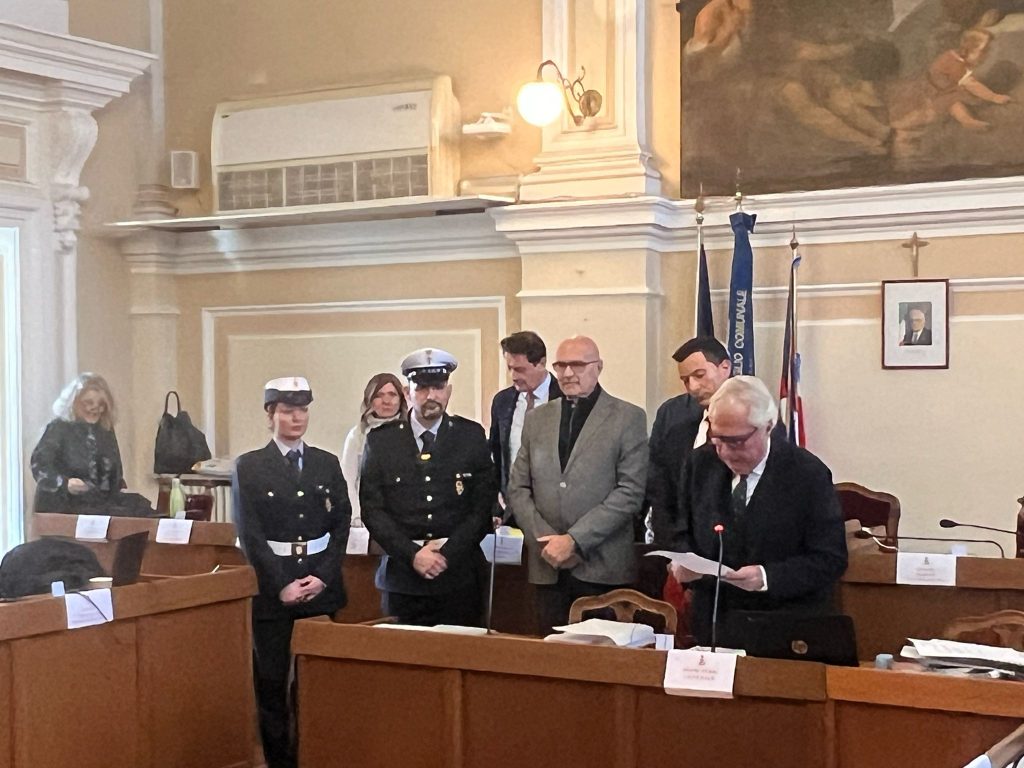 Il Sindaco di Vercelli, Roberto Scheda, ha conferito quest’oggi, giovedì 27 febbraio, prima della seduta del consiglio comunale, l’encomio agli agenti di Polizia Locale Andrea Belossi e Chiara Margiotta.