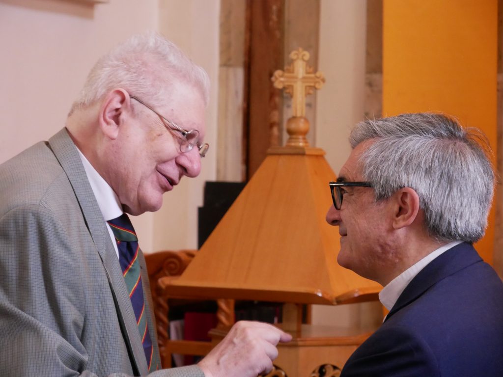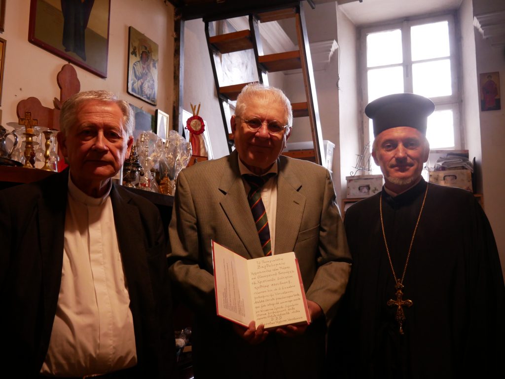 La delegazione era composta da Mons. Mario Allolio, Delegato arcivescovile per l’evangelizzazione della cultura, l’ecumenismo e il dialogo interreligioso e dal Prof. Renato Uglione, che tutti conosciamo come Autore della pregevolissima “summa” sull’opera di Sant’Eusebio ed organizzatore del convegno di studi sulla figura del Protovescovo del Piemonte