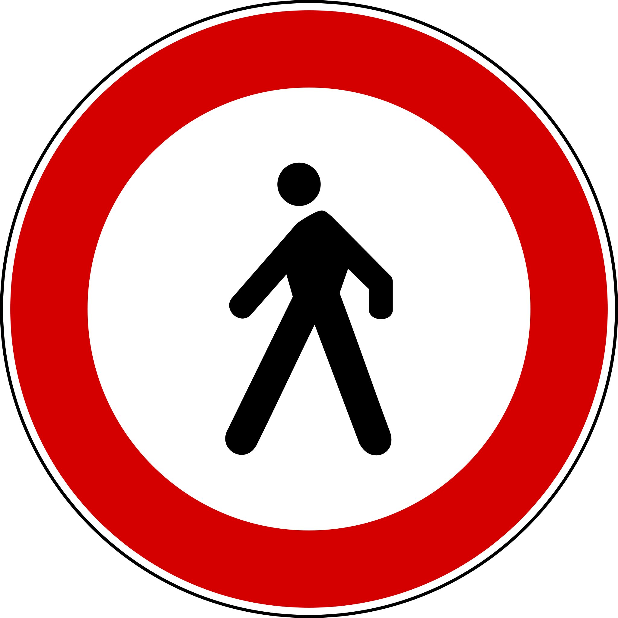 Se si volesse indicare che i pedoni non possono transitare, la segnaletica appropriata sarebbe quest’altra.