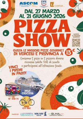 Pizza Show è un evento gastronomico che coinvolge le pizzerie con servizio al tavolo della provincia di Vercelli, con l’obiettivo di promuovere la qualità, la creatività e l’eccellenza del territorio; per 90 giorni , le pizzerie aderenti proporranno ai clienti pizze “Gourmet fuori menu”, ideate per esaltare ingredienti selezionati e abbinamenti innovativi.