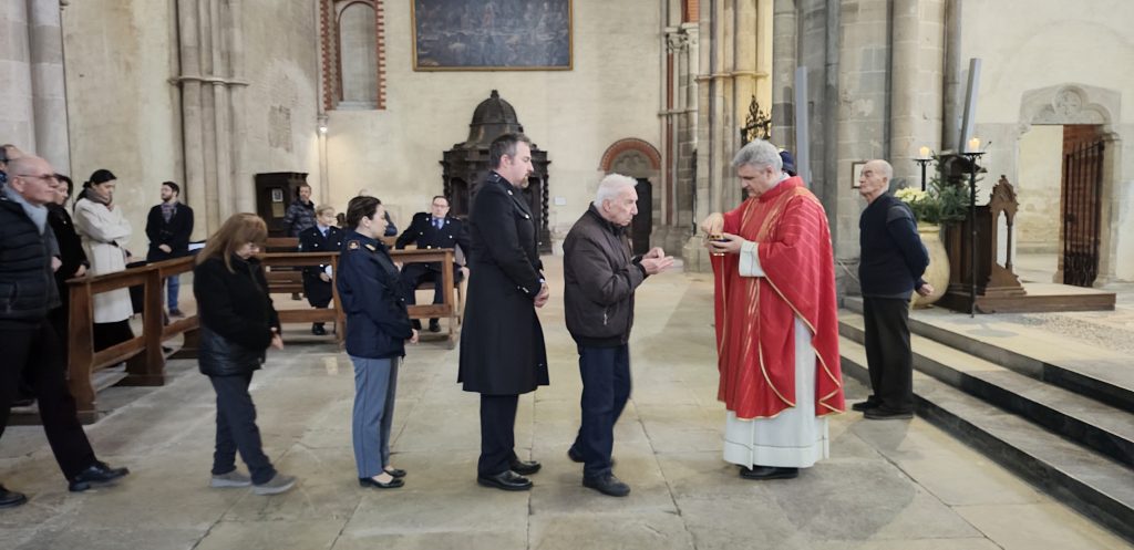 Nel corso della Liturgia celebrata in Sant’Andrea, il Vicario Generale della Diocesi di Vercelli, che ha presieduto la celebrazione, Mons. Stefano Bedello, dettando l’omelia, ha posto l’accento sul sentimento di paura (il riferimento è al Salmo 88, tra le Letture odierne, alla sua “attualizzazione” rispetto ai problemi dell’oggi) che sempre più spesso sembra opprimere le comunità: il lavoro delle Forze dell’Ordine è presidio di legalità e sicurezza.