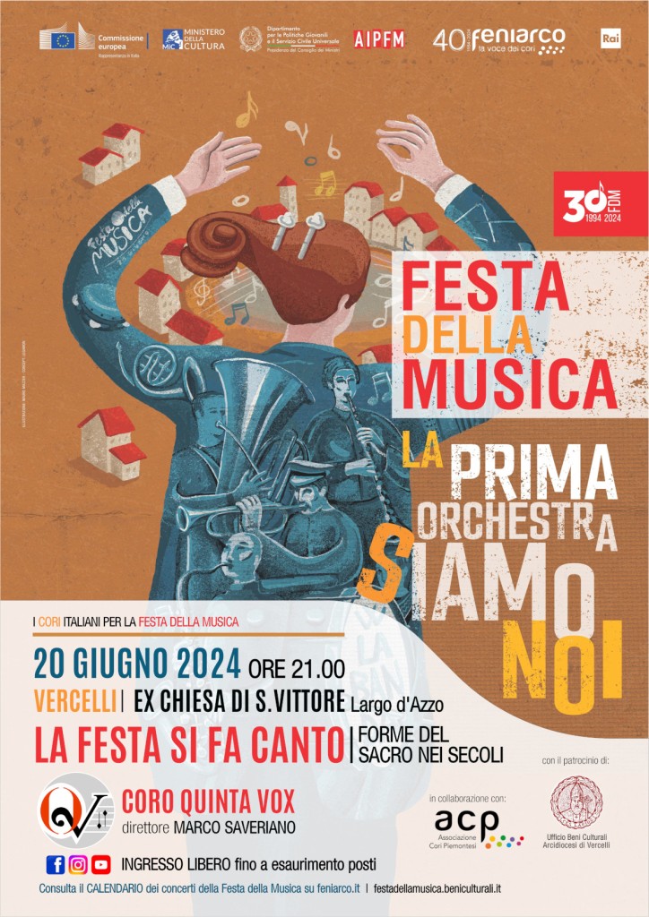 Il concerto, dal titolo “La Festa si fa Canto – Forme del Sacro nei Secoli”, è organizzato in collaborazione con la Federazione Nazionale Italiana Associazioni Regionali Corali (FENIARCO), l’Associazione Cori Piemontesi (ACP), l’Ufficio Beni Culturali dell’Arcidiocesi di Vercelli ed in condivisione con la Città di Vercelli.