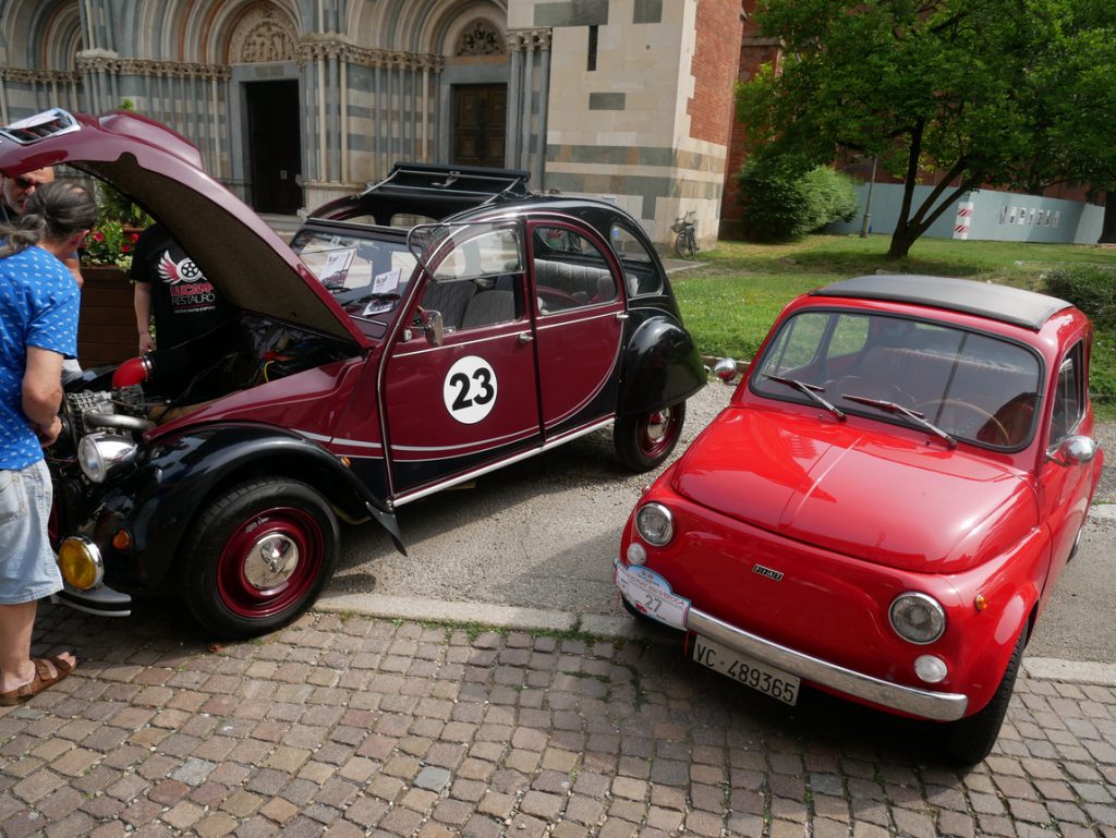 Domenica, dunque, con tante 500 (e qualche 600, poi altre motorizzazioni raffreddate ad aria, come la 2Cv Citroen) convenute davanti a S.Andrea per il raduno dei 65 anni, chiamate a raccolta dall’infaticabile Andrea Valeriano.