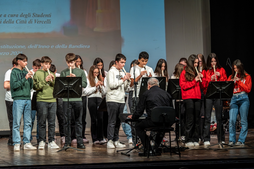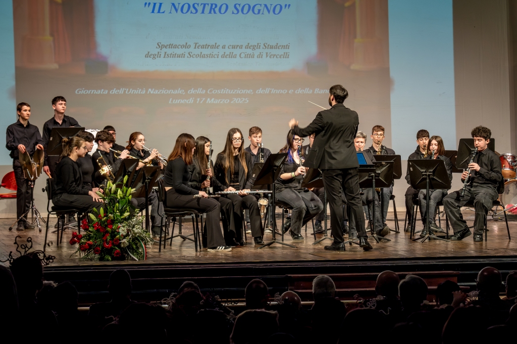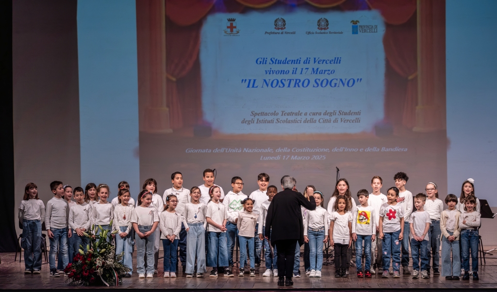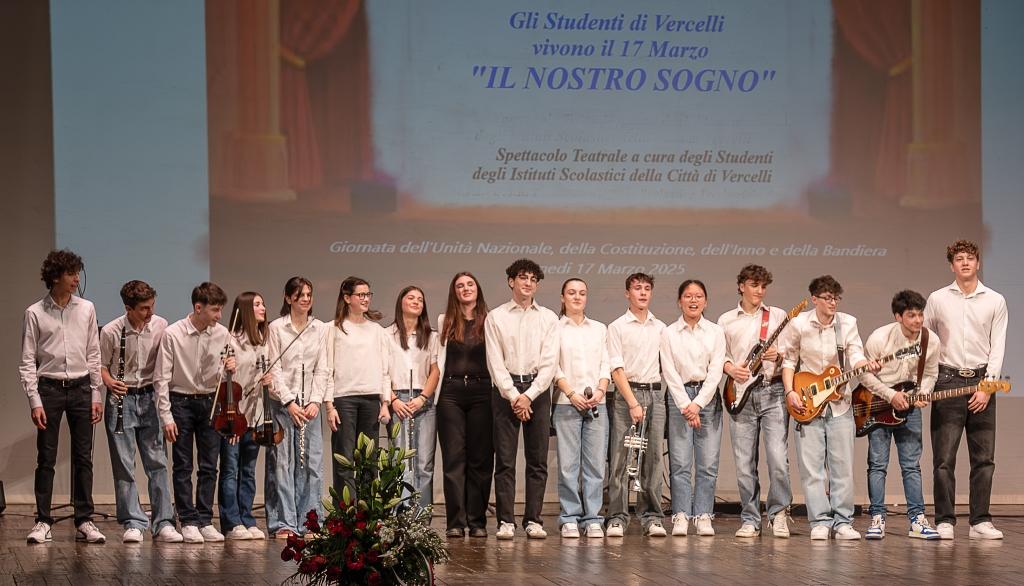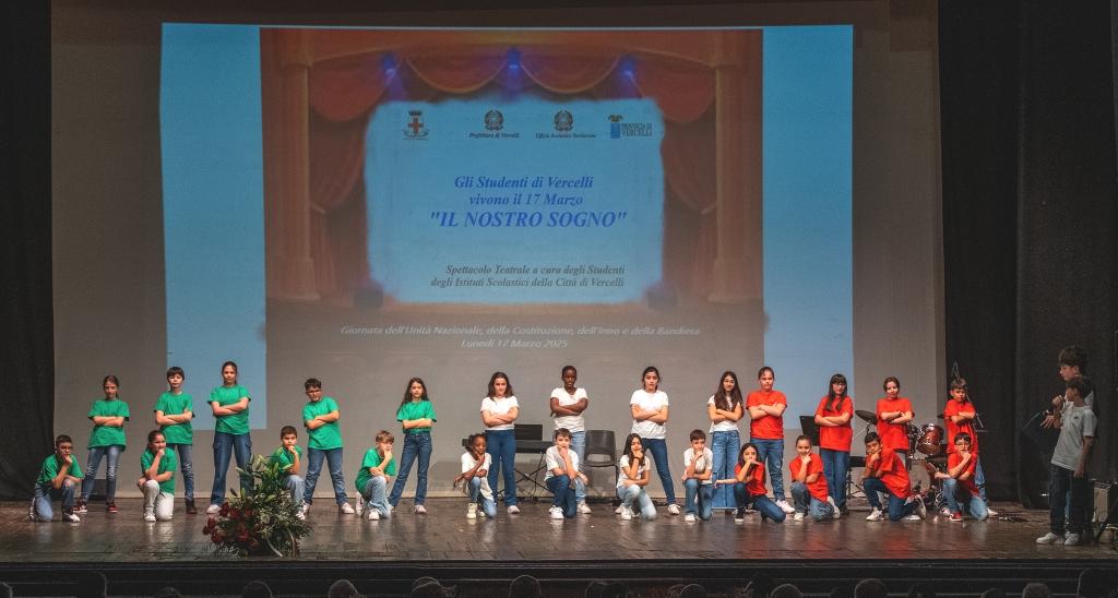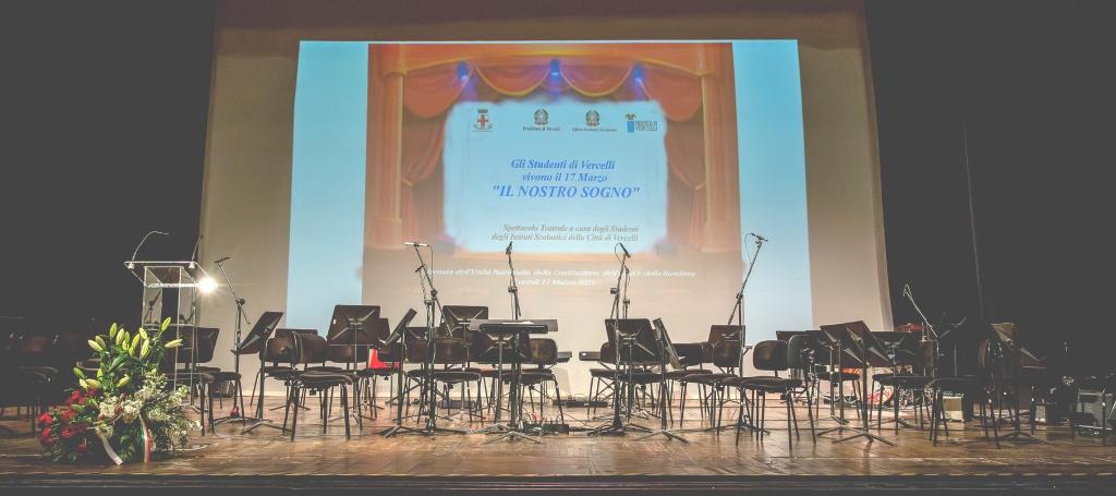 La Giornata dell’Unità Nazionale, della Costituzione, dell’Inno e della Bandiera è stata celebrata con lo spettacolo teatrale “Il nostro sogno” a cura degli studenti degli Istituti scolastici della città di Vercelli presentato lunedì 17 marzo al Teatro Civico.