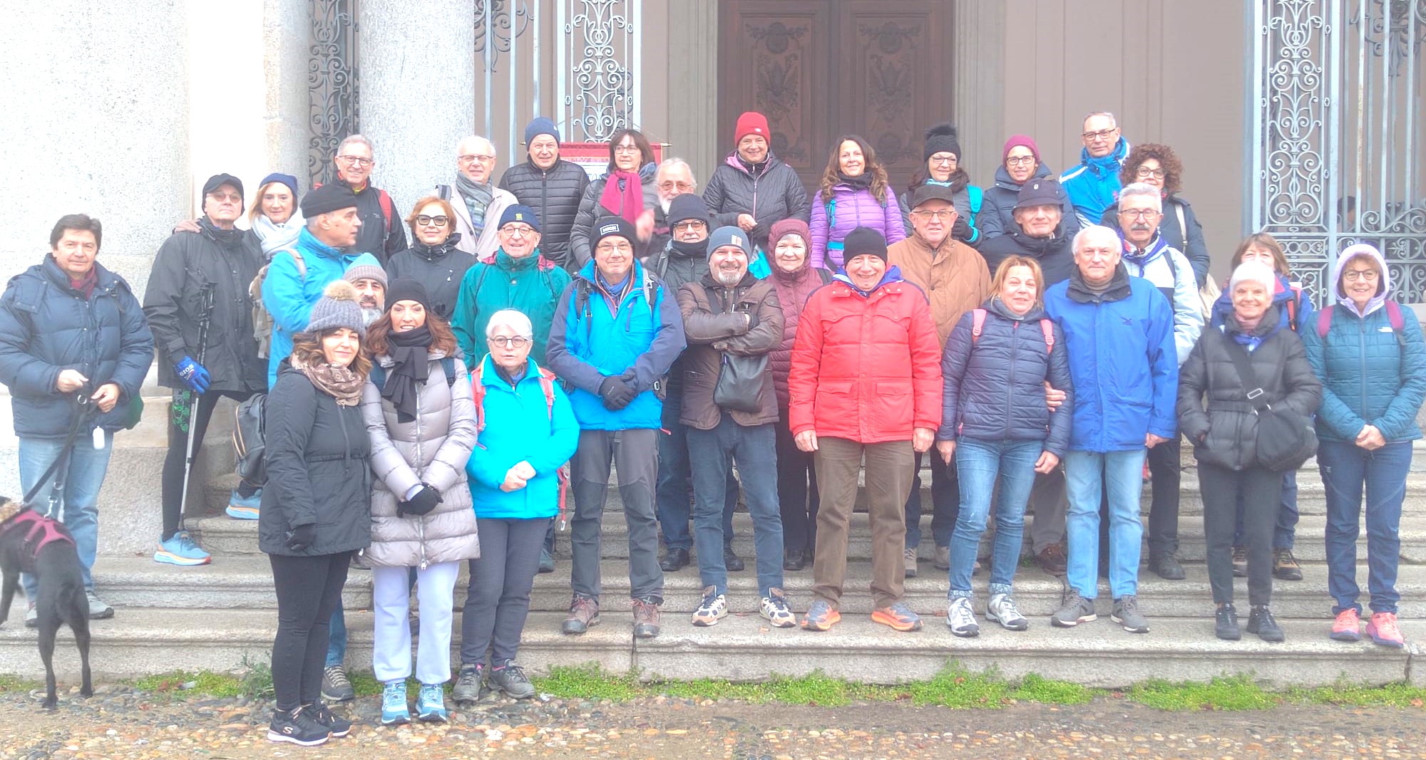 VERCELLI - I camminatori della Via Francigena, sfidano la nebbia e partono dal Duomo alla volta di Selve di Salasco - Un bel gruppo, motivato e ginnico quanto basta -