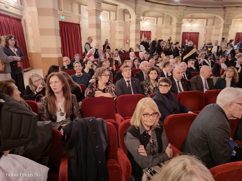 La comunità studentesca quest’anno è stata rappresentata da Joyce Djoussi, iscritta al VI anno del corso di laurea magistrale a ciclo unico in Medicina e Chirurgia. Nel suo intervento, la laureanda ha sottolineato come l’università rappresenti non solo un luogo di studio, ma un vero e proprio ponte in cui identità e culture diverse si incontrano e crescono insieme. Ha ricordato le sfide umane e burocratiche che gli studenti internazionali affrontano quotidianamente, elogiando gli strumenti concreti messi in campo dall’Ateneo per favorire l’integrazione, come il “Benvenuto Matricole” e i sistemi di supporto tra pari. Infine, ha evidenziato come le diversità siano lo strumento più prezioso per “curare” le distanze e far crescere una società più coesa.