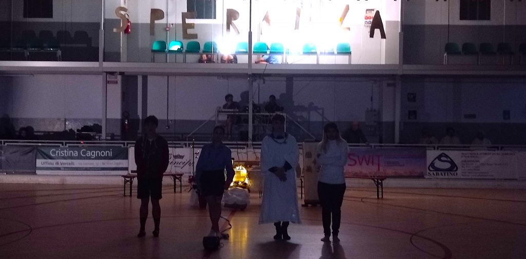 In primo luogo, la meticolosa preparazione che si deve alla collaborazione (si intuisce un lavoro di giorni) tra la Comunità pastorale affidata ai Salesiani (Isola, Belvedere, Caresanablot), il Comune, e tanti altri che il Parroco Don Claudio ha ringraziato in modo particolare: Don Gianni, Efrem Fedrigo e Angelo Cino, la Società Hockey Club Amatori Vercelli e i suoi volontari Francesco Lazzarin e Massimo Ferraris, i volontari della Parrocchia Francesco Formisano Maurizio Pramaggiore e Suor Samuela Bordone, la Croce Rossa Italiana – Comitato di Vercelli e gli addetti antincendio Atrap – Alessandro Nardella.Grazie agli Scout Vercelli che hanno animato la Veglia.