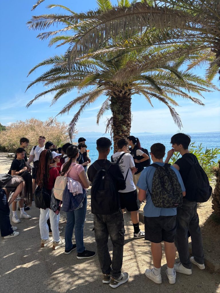 Il percorso scelto – il sentiero più basso, a ridosso del mare fino alla Baia del Corvo – ha trasformato il paesaggio in un libro aperto. Sotto i piedi degli studenti non c’era solo terra, ma geologia viva: antiche formazioni rocciose, stratificazioni, segni di un passato che parla di fondali oceanici e movimenti della crosta terrestre.