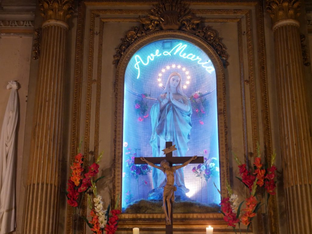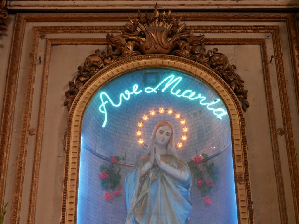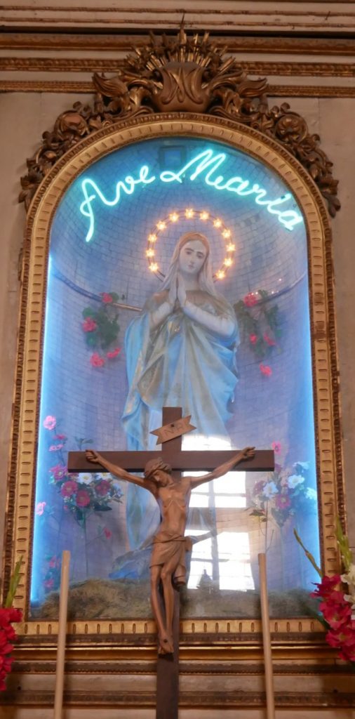 Se la navata principale è come “custodita” da una sacra effige di Maria, che dall’alto guarda con amore i suoi figli (anche quest’opera, oggetto di un pregevole restauro), la chiesa delle ragazze rivela un ulteriore tesoro che si sta recuperando.