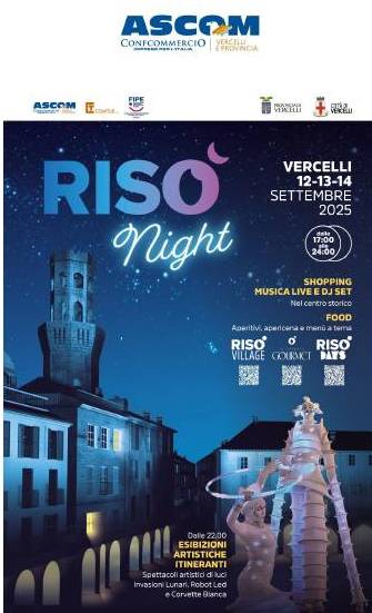 Vercelli si prepara alle Riso’ Night, organizzate da Ascom Confcommercio Vercelli, Comune di Vercelli e Provincia di Vercelli.