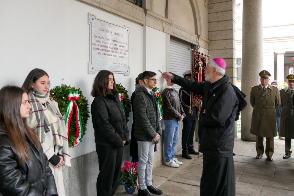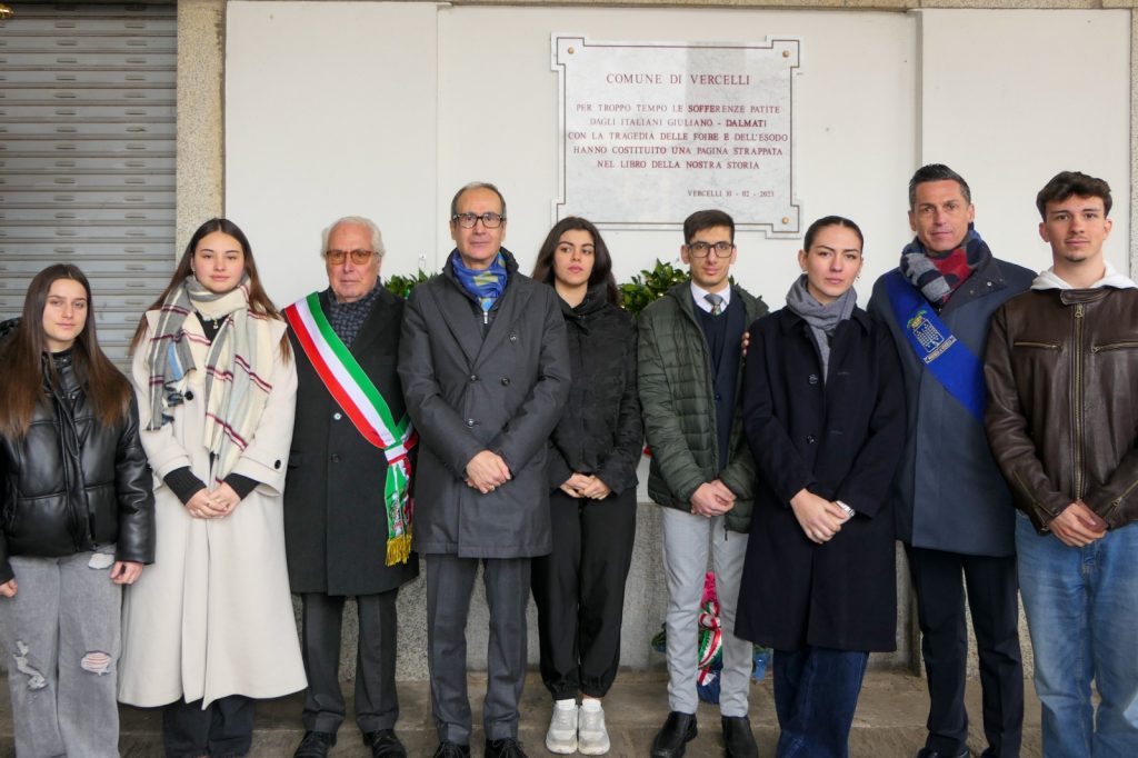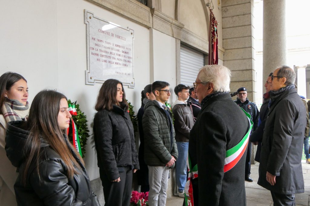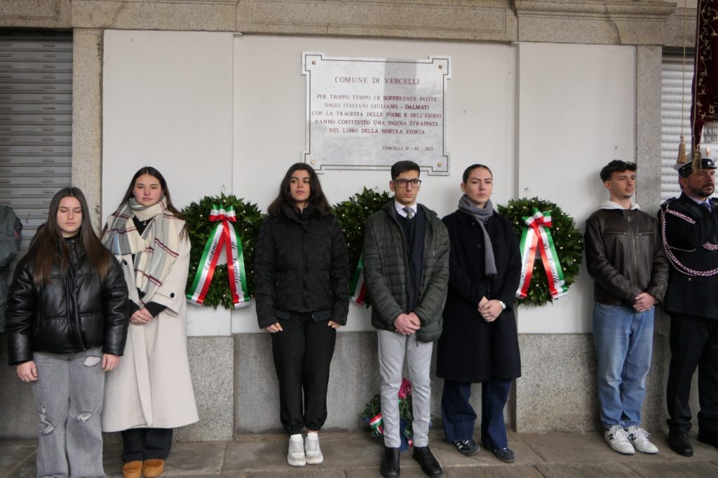 Raggiungendo oggi, 10 febbraio, la Chiesa di San Paolo a Vercelli per documentare questa “Giornata del Ricordo”, l’attenzione si è appuntata sul piccolo drappello di ragazzi che, sotto il portico del Municipio dove sono le targhe di marmo cui è consegnata la memoria dei Caduti vercellesi, allestivano pochi “segni” commemorativi di quel dramma.