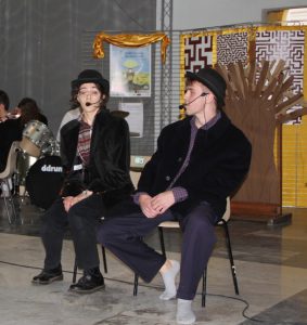 Abbiamo quindi applaudito 2 famosi brani dei Beatles, e poi via via le varie rappresentazioni sceniche basate sul Tema del Labyrinthos, una espressione sintetica della trasformazione dal Buio alla Luce; per poi passare alla ottima recitazione di una scena di “Waiting for Godot” in lingua originale; poi, Mino Tauro e il labirinto, La casa di Asterione, Teseo e la casa delle Gru, e il finale con la Festa della Libertà (Freedom).