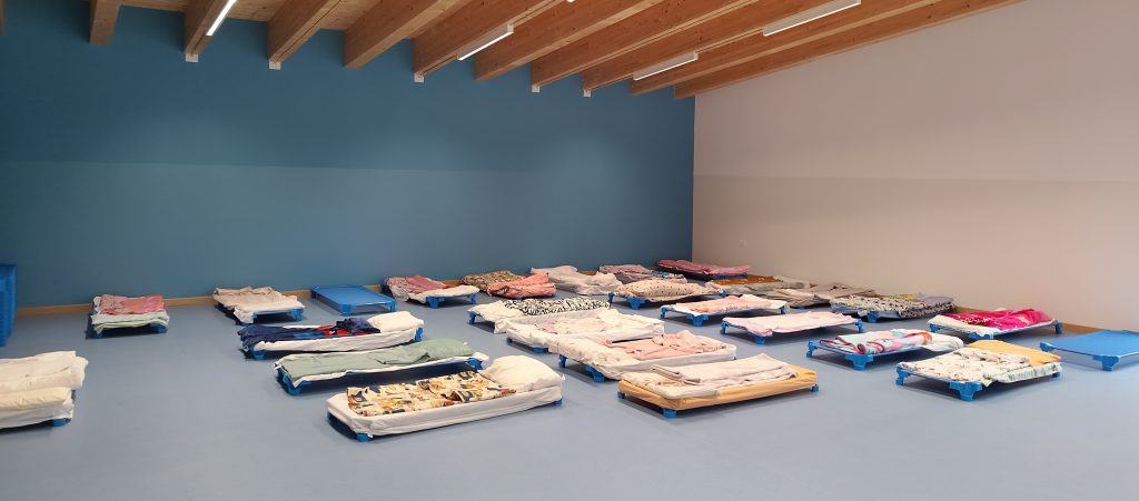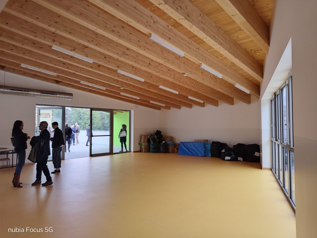 Costruita interamente in legno, la struttura richiama l’accoglienza calda e rassicurante di uno chalet di montagna, pur mantenendo l’anima moderna: ampie vetrate che inondano di luce naturale ogni ambiente, illuminazione a LED, riscaldamento a pavimento e sistemi domotici di ultima generazione. «Ogni dettaglio – interviene Stefano Pasquino, assessore all’Edilizia scolastica – è stato studiato per offrire il massimo comfort ai bambini e per facilitare il lavoro quotidiano del personale».
