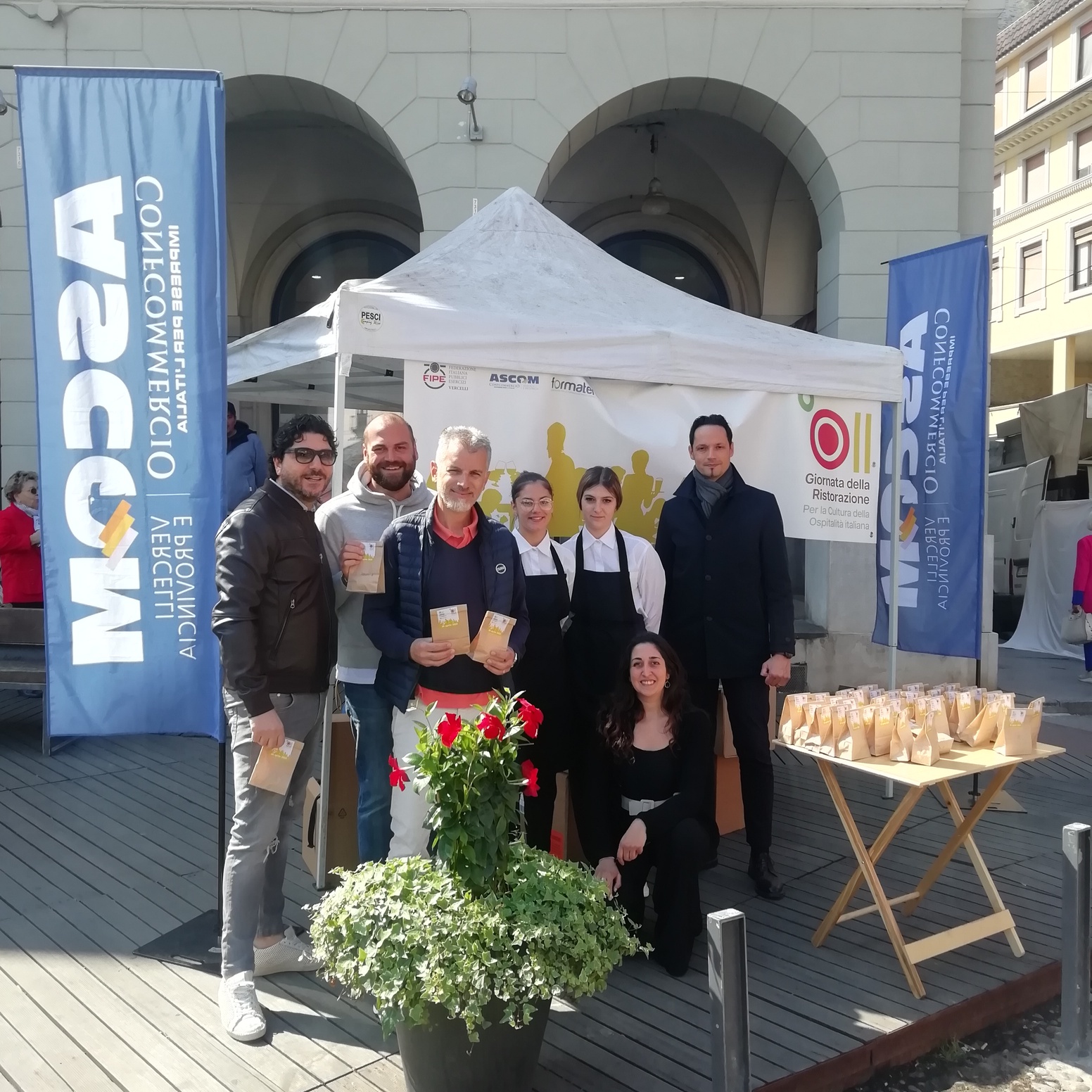 Non è mancato un momento pubblico, in Piazza Cavour, dove gli Operatori Ascom (con loro il direttore Andrea Barasolo ed il funzionario Federico Graglia): tante persone hanno potuto informarsi direttamente sulla giornata e le attività della ristorazione vercellese.