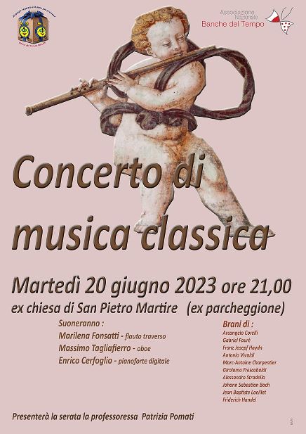 Suoneranno: Enrico Cerfoglio (pianoforte digitale), Marilena Fonsatti (flauto traverso), Massimo Tagliafierro (oboe); presenterà la serata la professoressa Patrizia Pomati.