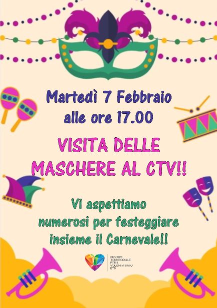 Ad accogliere il Bicciolano, la Bela Majin e le maschere dei vari rioni ci saranno i consiglieri di CTV, gli operatori e i volontari delle tante Associazioni locali, per festeggiare insieme la gioiosa ricorrenza del Carnevale.