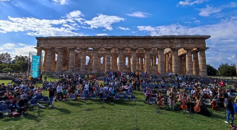 scuola nella quale insegno, ci siamo recati in occasione di un evento pressoché “ storico”: gli studenti dei licei musicali italiani , hanno registrato un cd ( unico Istituto piemontese) “Music for Pope” a Paestum che è stato consegnato in occasione dell’ Udienza generale del giorno 26 ottobre 2022.