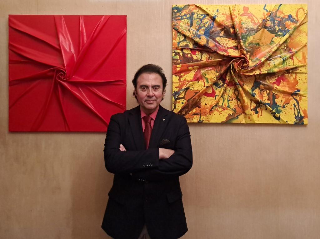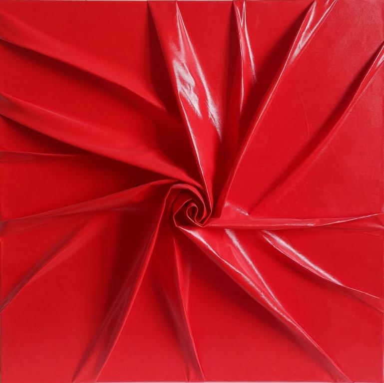 Si vuole cogliere così, attraverso le opere dai colori alchemici più intensi, proprio la quinta dimensione, cioè quella del pensiero, della coscienza e della pura energia da cui proviene la dimensione volumetrica dinamica, realizzata attraverso il movimento della tela scolpita dalle variazioni cromatiche della luce e che viene modellata dall’artista come una pittoscultura, per trasmettere quel senso di espansione perenne della coscienza e dello spirito dell’artista in uno stato continuo di psychotrance assoluta, cioè di estasi totale della mente e del cuore.