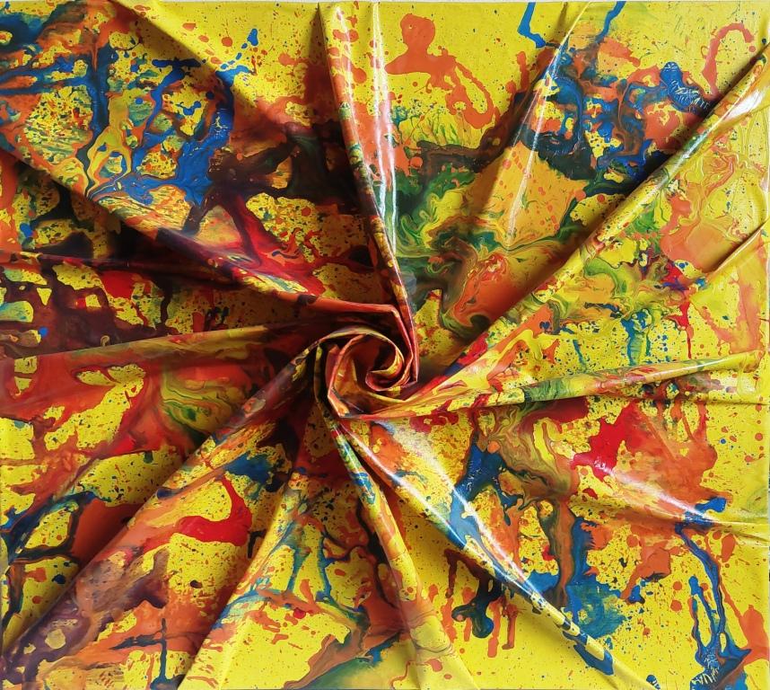 Deflagrazioni magmatiche che nascono dagli abissi profondi dell’anima e della mente creatrice dell’artista in Kromotrance e che si diffondono ovunque con energia tetracromatica infinita, travolgendo ogni forma conosciuta, disgregandola e transatomizzandola per proiettarla nuovamente verso un altro Kaos primordiale nell’alba iperdimensionale fluente e vibrante della ri-genesi artistica.