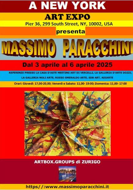 Massimo Paracchini, dopo aver partecipato con successo alla Biennale di Venezia nel Padiglione Grenada, è stato invitato a video esporre una delle sue opere dal 3 al 6 aprile 2025 all’Art Expo di New York, che da oltre 40 anni è luogo d’incontro per amanti dell’arte, gallerie, collezionisti e visionari e altre due opere alla Galleria Andakulova a Dubai, presso le Damac Park Towers dal 1 al 30 aprile.