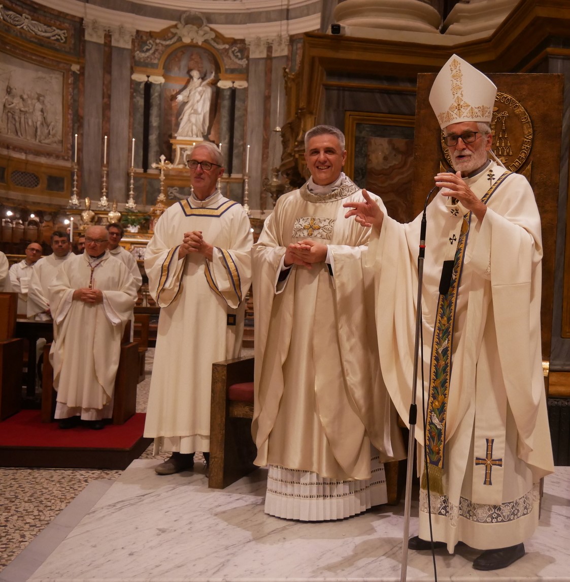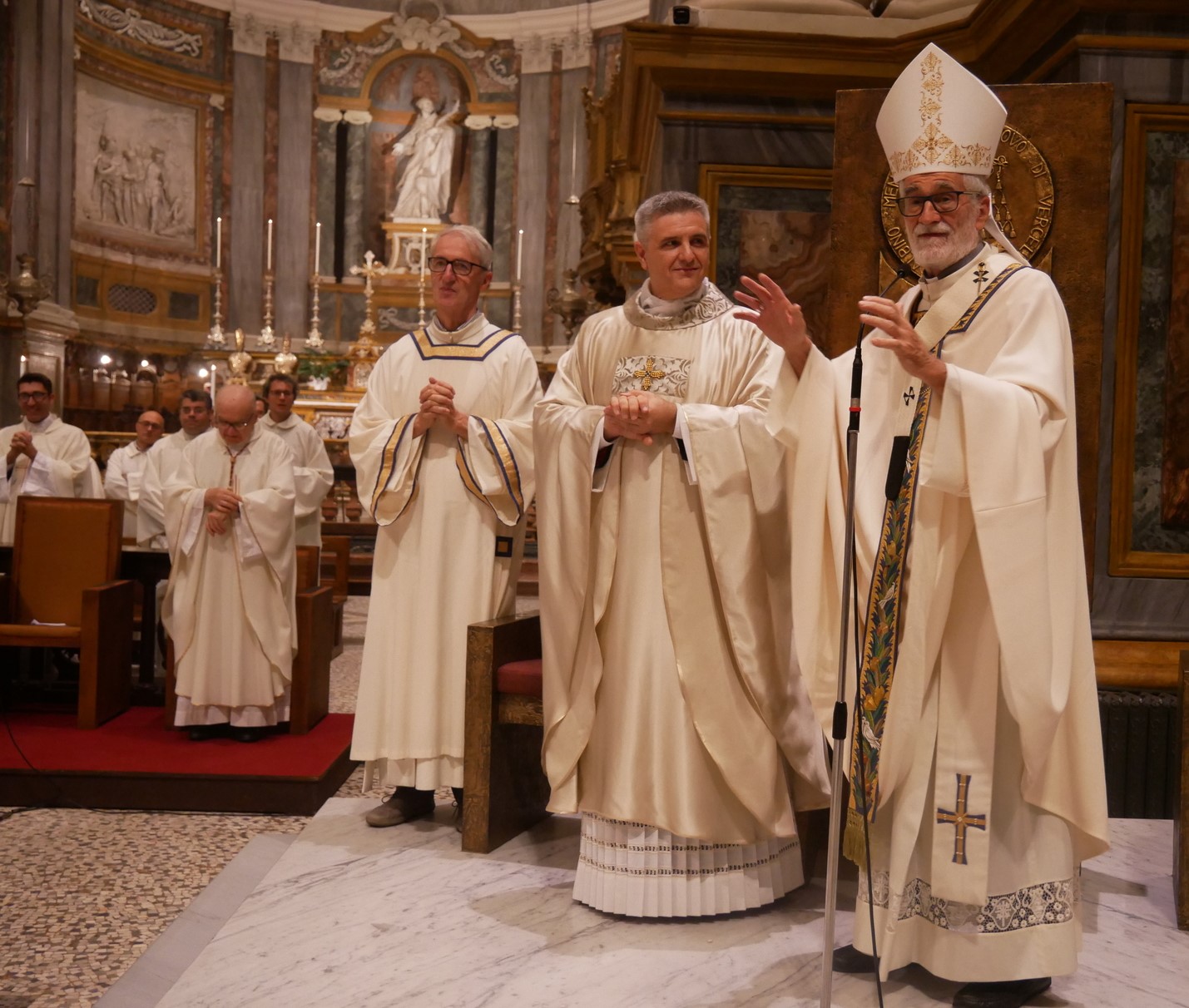 Poi, il “grazie” del Prete, accolto in questo Presbiterio diocesano 14 anni orsono, consacrato dall’Arcivescovo Padre Enrico Masseroni ed ora, da Mons. Marco Arnolfo, destinato a questo duplice, impegnativo incarico, di Vicario Generale della Diocesi e di Parroco di Sant’Eusebio, la Parrocchia del Duomo di Vercelli e coordinatore dell’Unità pastorale che comprende anche Sant’Agnese, San Giuseppe e San Bernardo – Madonna degli Infermi.