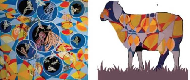 Le opere sono del gruppo “Box d’Arte” che ha svolto un tema intrigante, ogni artista ha creato una sua pecora, abbinandola ad un quadro. Ogni “pecora” ha una sua peculiarità che la pone “fuori dal gregge”. Le borse realizzate da Brein ne riprendono forme e colori.